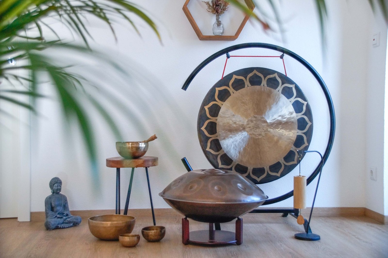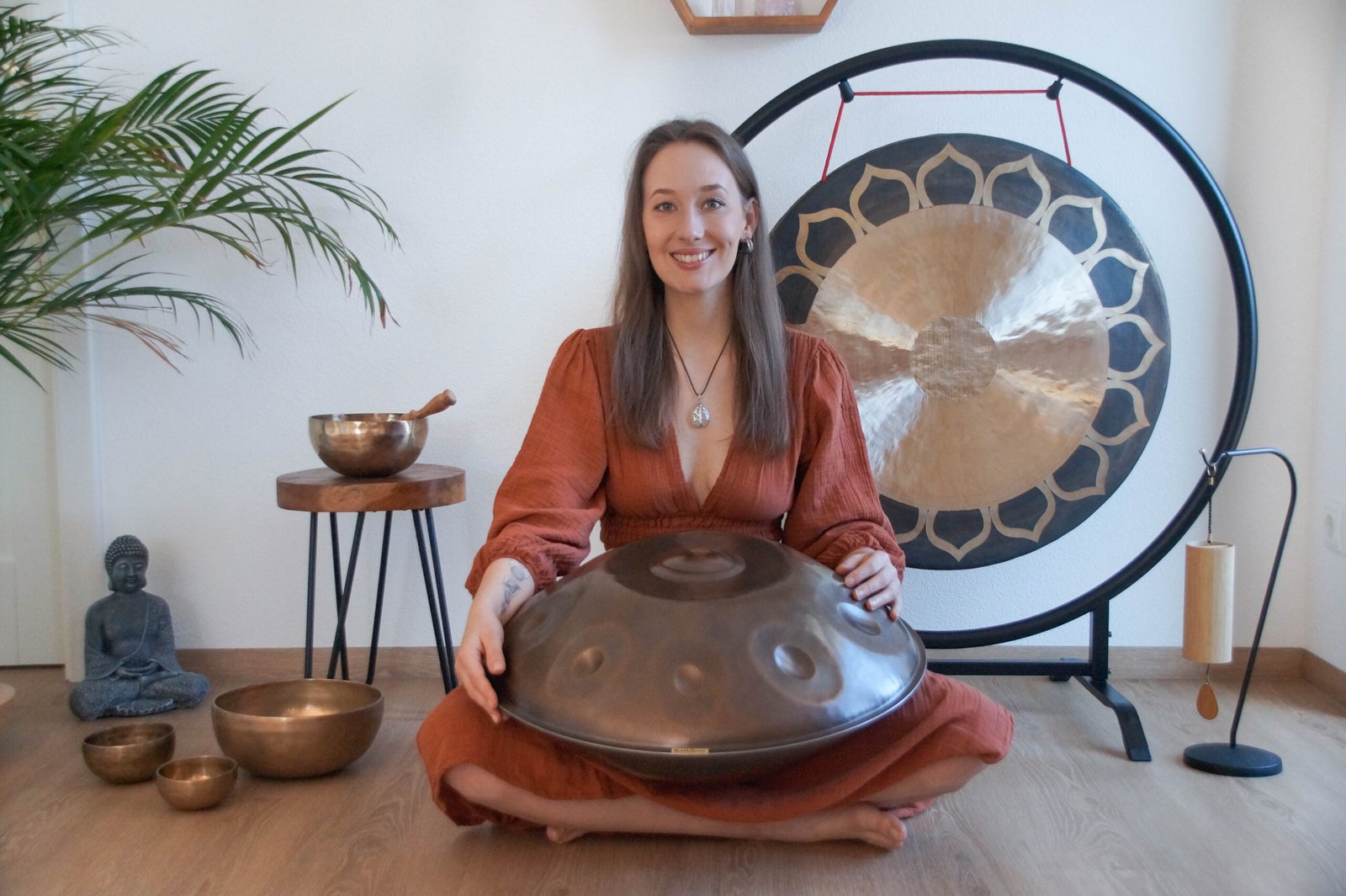 Du bist Yogalehrer/in? Gerne komme ich in deinen Kurs und begleite deine Stunde individuell mit der Handpan, Gong oder Klangschalen.